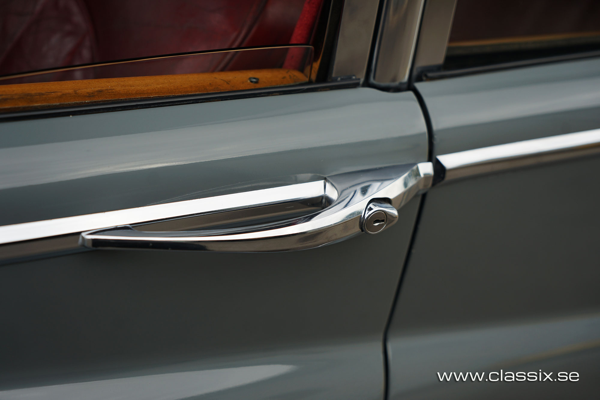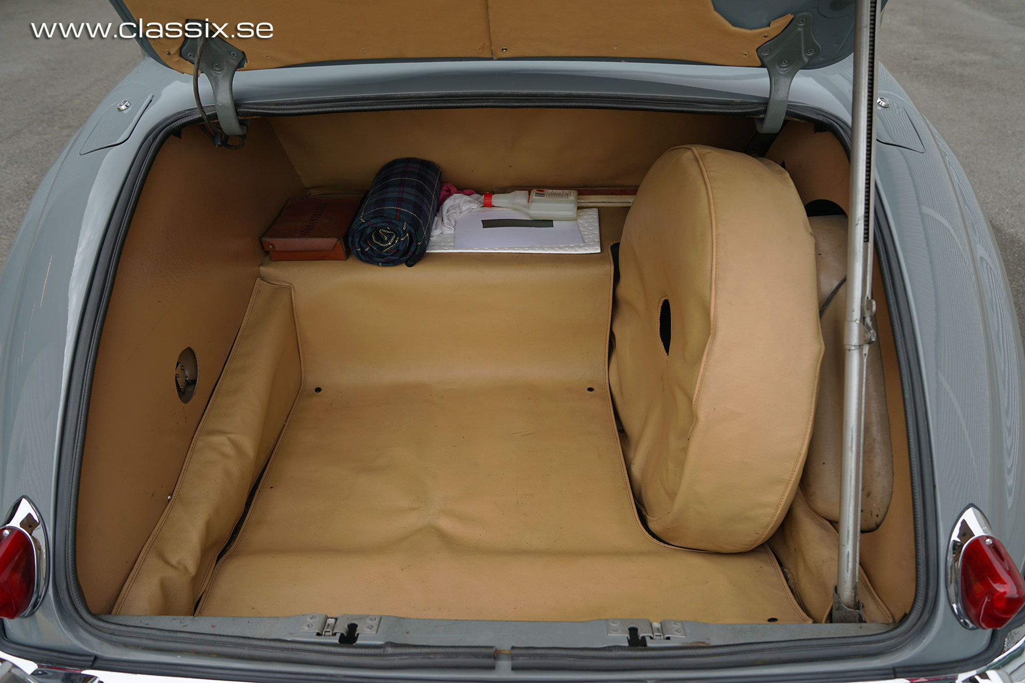 Exterior: This Jaguar Mark VIII is finished in a two tone combination of Cornish Grey over Mist Grey. I have always thought that two tone really brings out the flowing curves of the Mk8’s bodywork, and on this car it looks spot on. The condition is very good for regular use. The paint has a nice shine with only a few small marks here and there which give it some character. The chrome work on the bumpers, headlamps and grille is excellent and catches the light beautifully. Both the exterior and interior color correspond with how the car was when it left the factory.