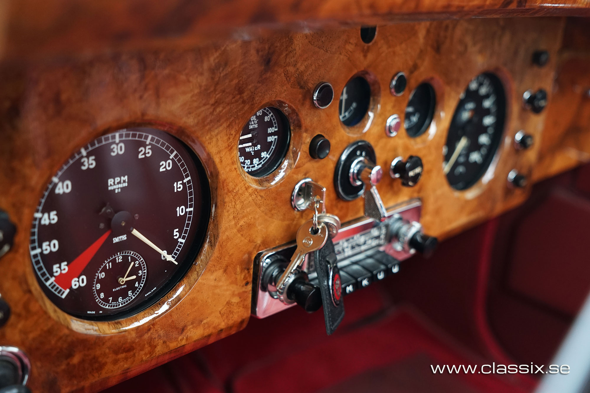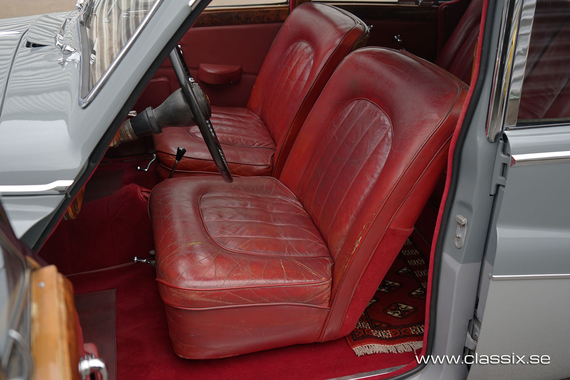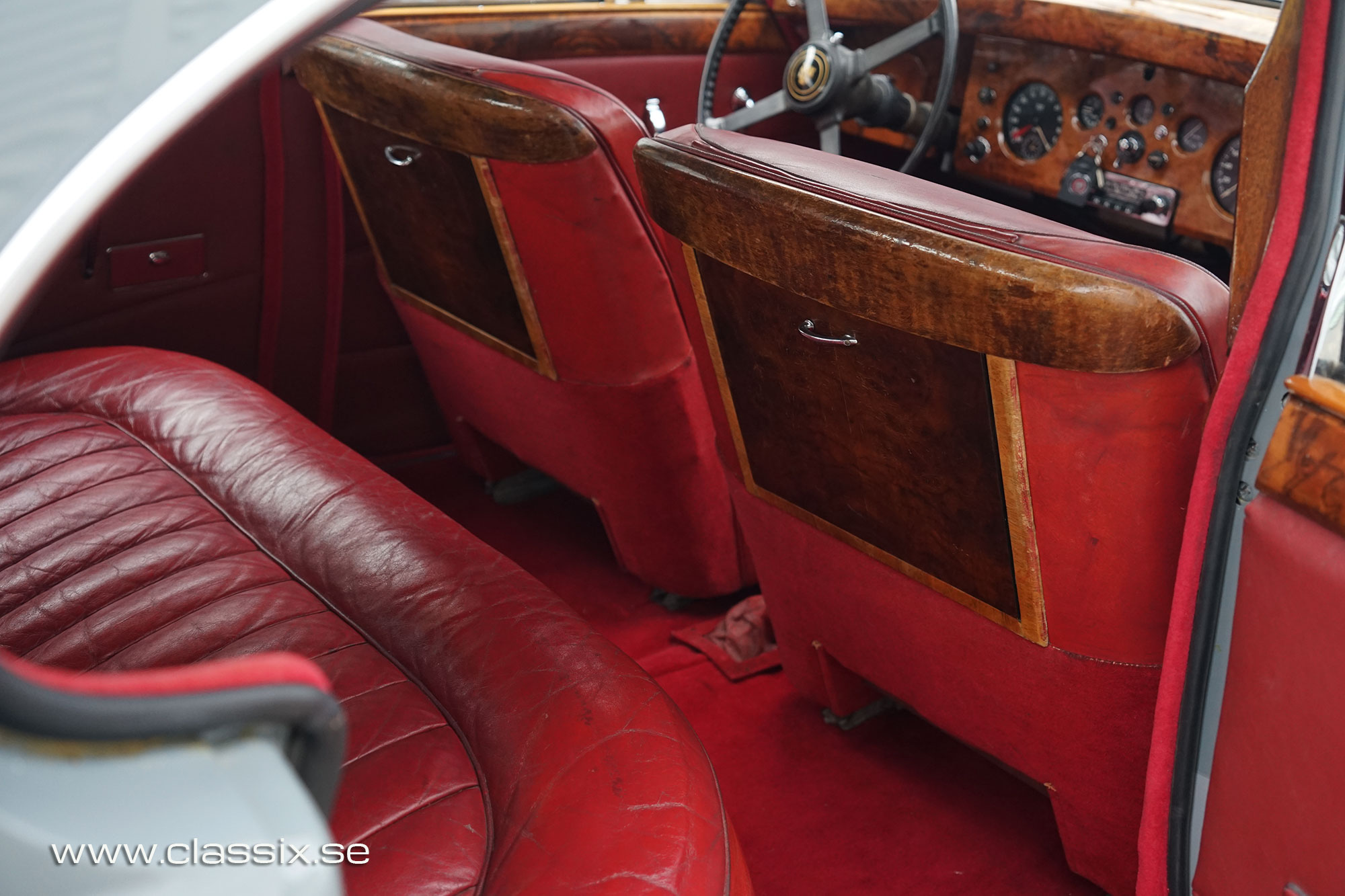 Interior: This is where the Jaguar Mk8 really stands out for me. The dark red leather is original and has aged beautifully. It gives the cabin that unmistakable scent of classic British luxury. The colour works perfectly with the exterior shades. The carpets are in excellent condition, the interior chrome is bright and the wood veneer is attractive with just a couple of small blemishes on the backs of the front seats. The headliner is clean and above it there is a factory sunroof which is perfect for warm days when you want a little extra air. All interior functions are working apart from the stereo. It is a comfortable and inviting place to sit whether you are in the front or relaxing in the rear seats.