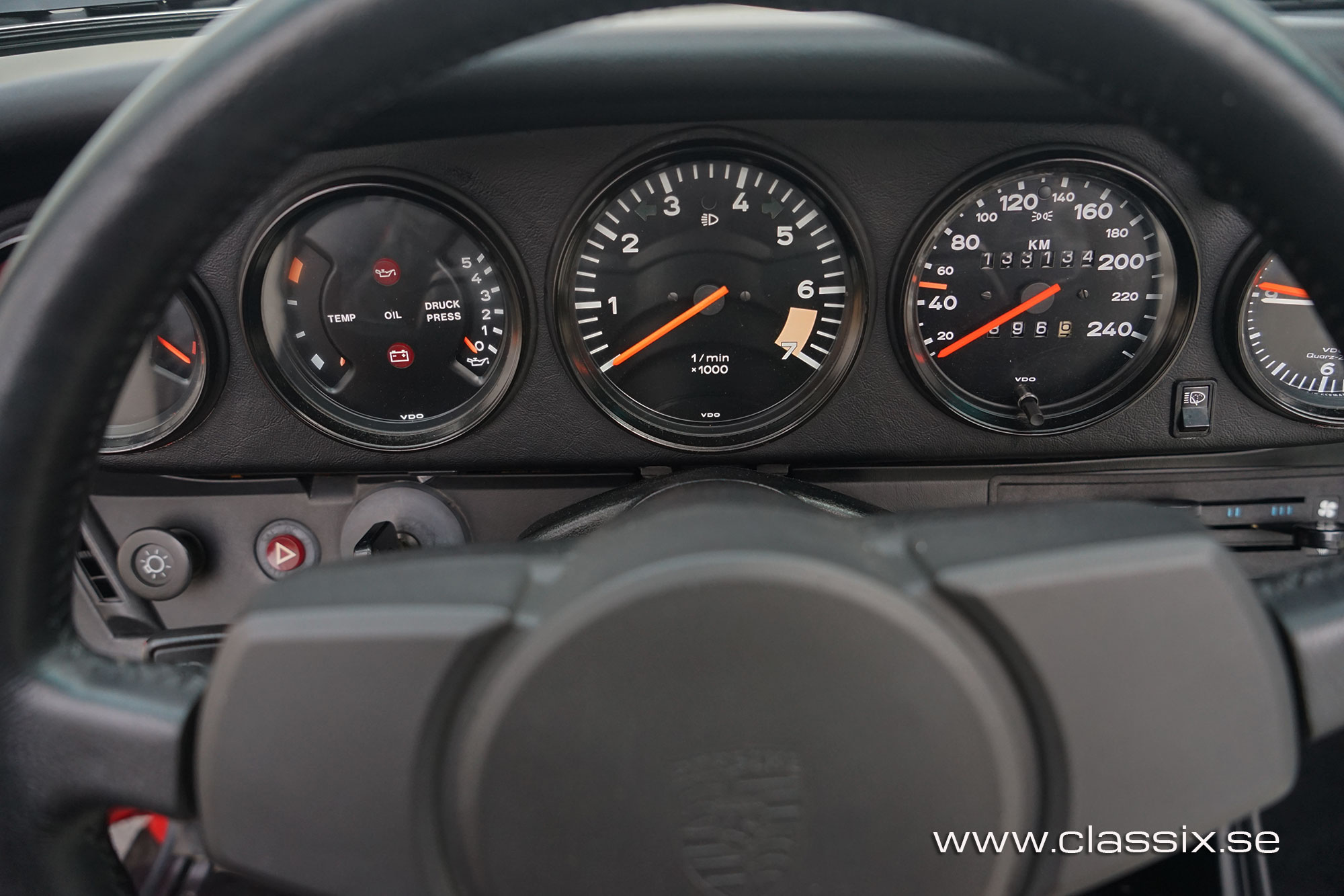 History and Documentation: The provenance of this Porsche 911 SC Cabriolet is exceptional. Sold new in Sweden, it has remained in the country its entire life, benefiting from a documented history. The mileage is fully verified by a near-complete collection of MOT (Besiktning) records dating back to when it was new. The original service book is present and stamped accordingly, accompanied by the full set of owner’s manuals, the original toolkit, the factory jack, and both original keys. The extensive file of recent invoices proves that no expense has been spared in keeping this classic 911 convertible in peak performing condition. It is a turn-key collector's piece ready for the open road.